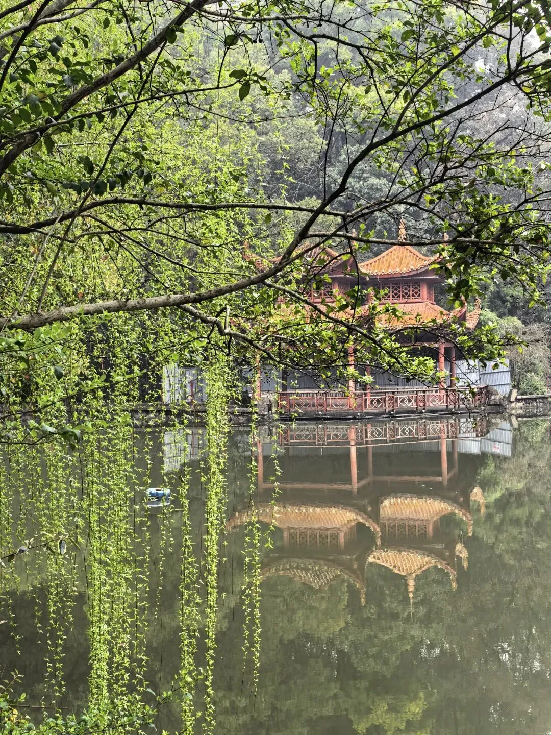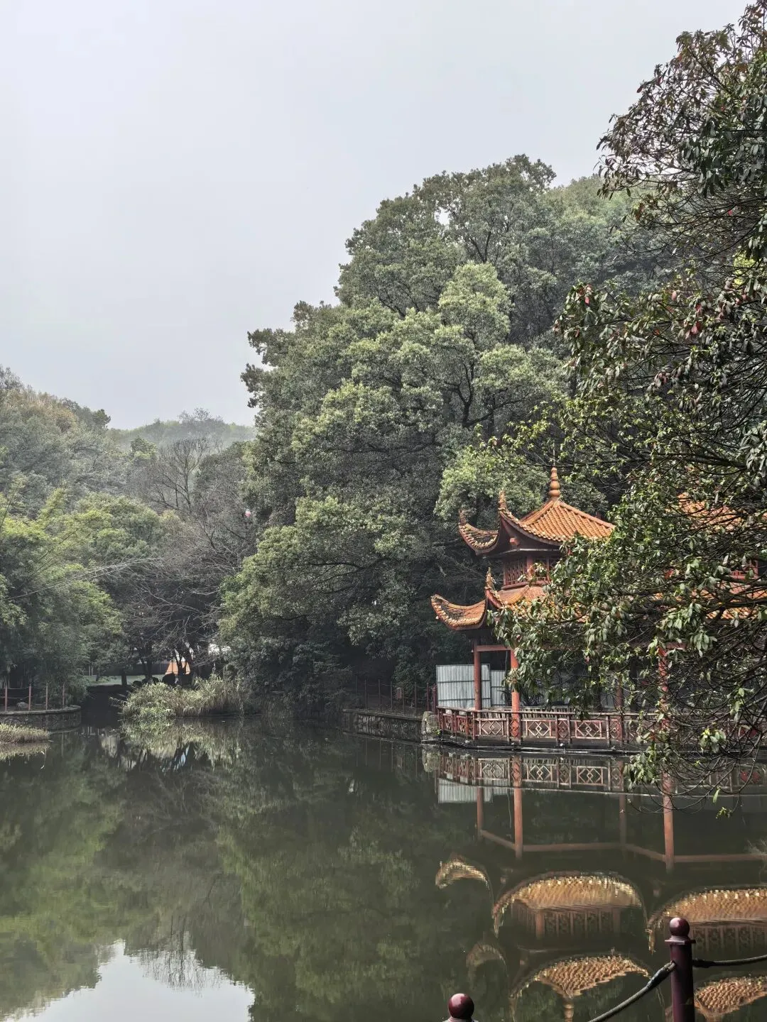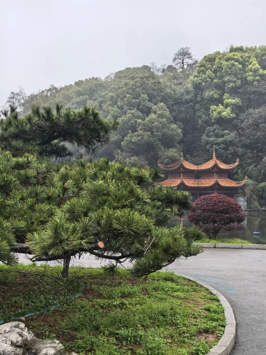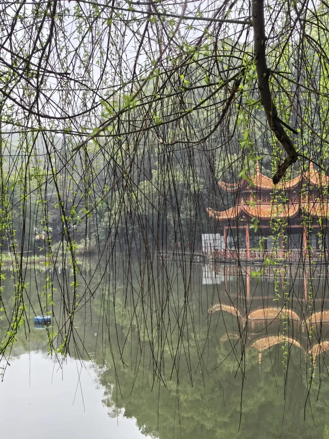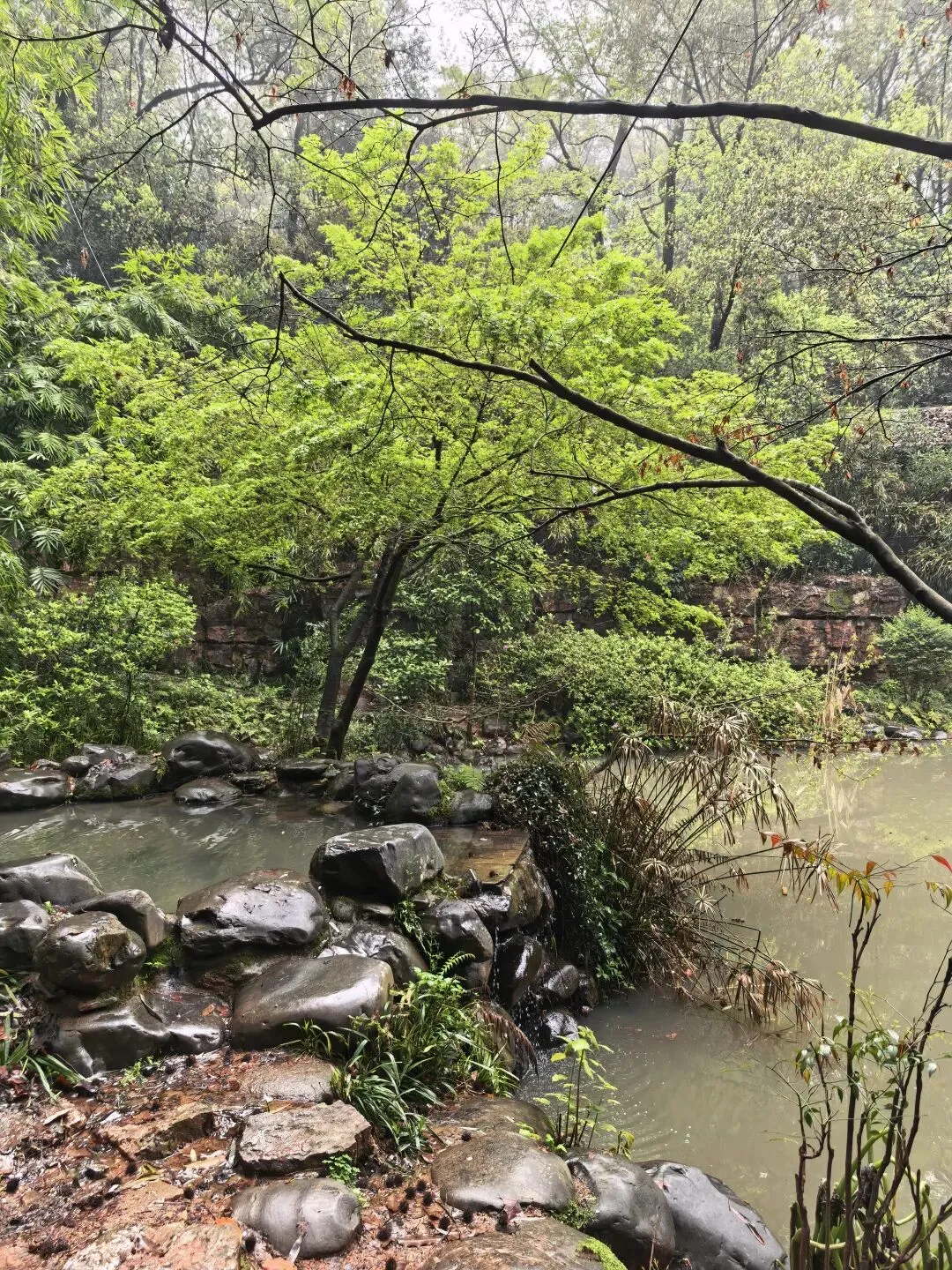今天长沙的清晨,蒙蒙的细雨暂停了飘洒,墓园的红檵木令人眼前一亮,红的花绿的叶,生命的美好让人更加珍惜眼前的日子。 以前到新开铺总是路过南郊公园,但从未踏足。今日兴之所往发现南郊公园很有江南风韵,亭台楼阁、小桥流水、翠竹青葱。 双亭掩映在绿水翠竹之中,新柳垂垂在绿水之上,早春的气息扑面而来。 杜鹃花开放在溪水边更有小桥流水的江南风韵。