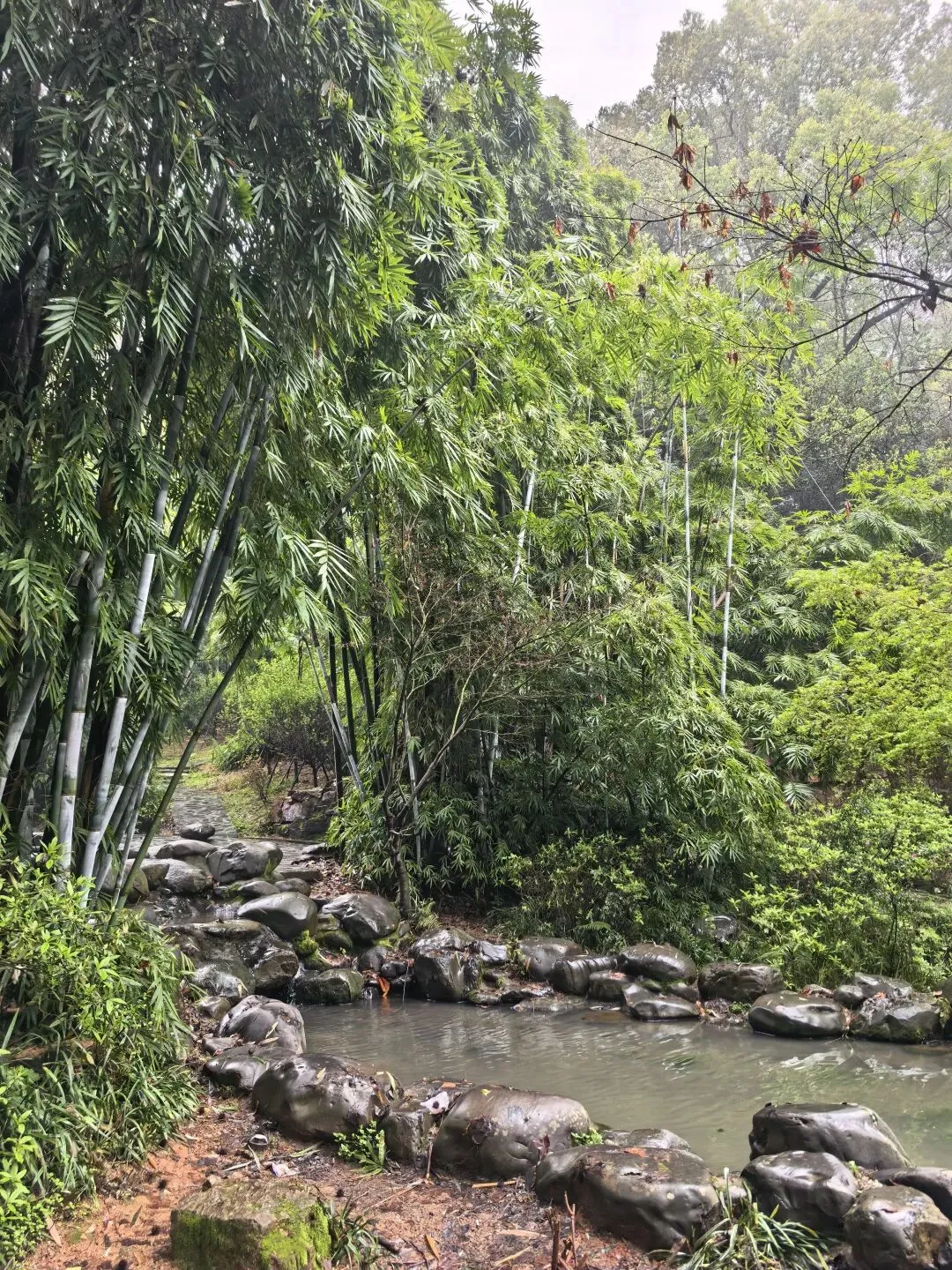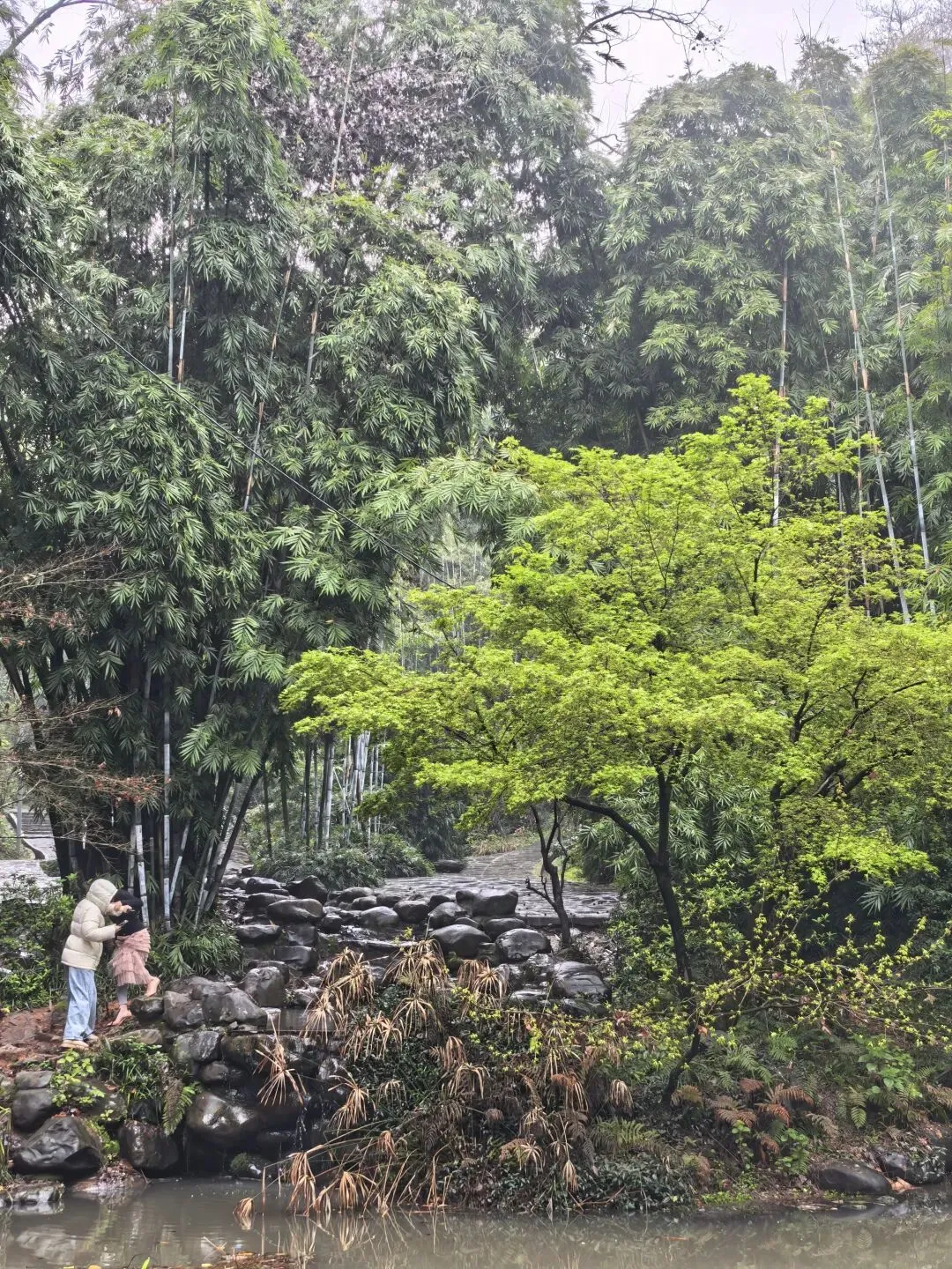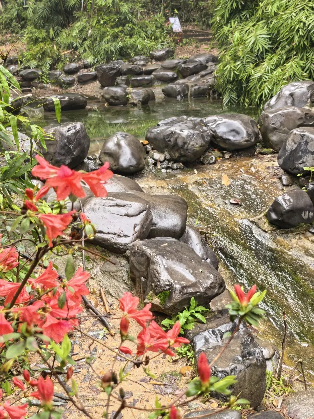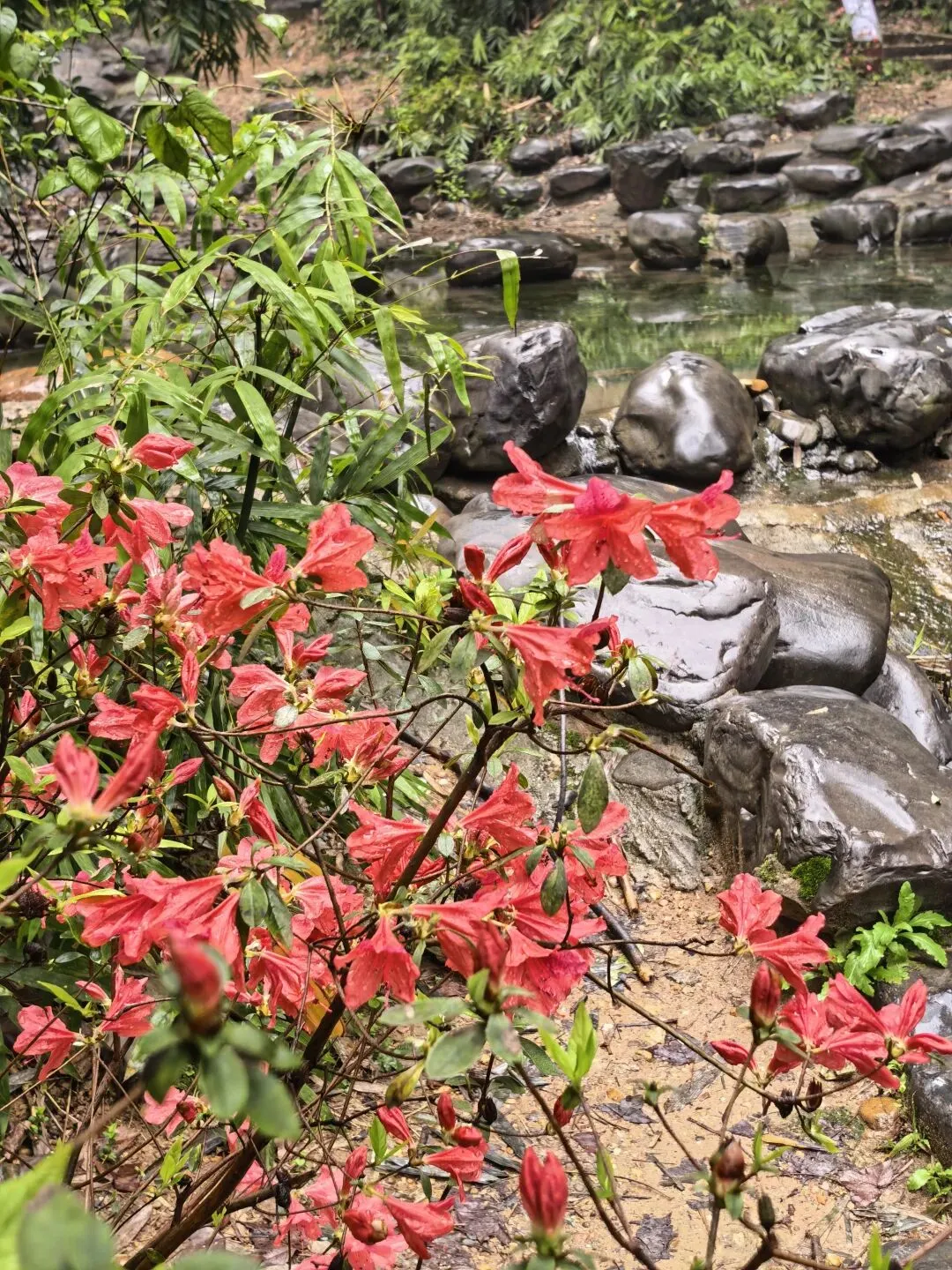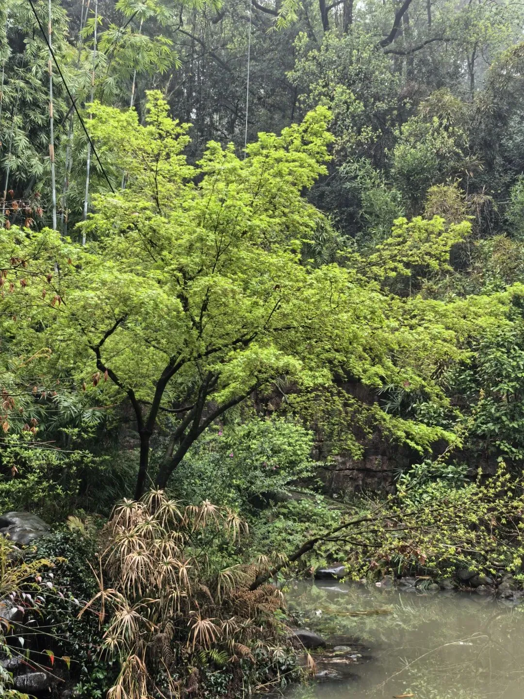 今天长沙的清晨,蒙蒙的细雨暂停了飘洒,墓园的红檵木令人眼前一亮,红的花绿的叶,生命的美好让人更加珍惜眼前的日子。 以前到新开铺总是路过南郊公园,但从未踏足。今日兴之所往发现南郊公园很有江南风韵,亭台楼阁、小桥流水、翠竹青葱。 双亭掩映在绿水翠竹之中,新柳垂垂在绿水之上,早春的气息扑面而来。 杜鹃花开放在溪水边更有小桥流水的江南风韵。
