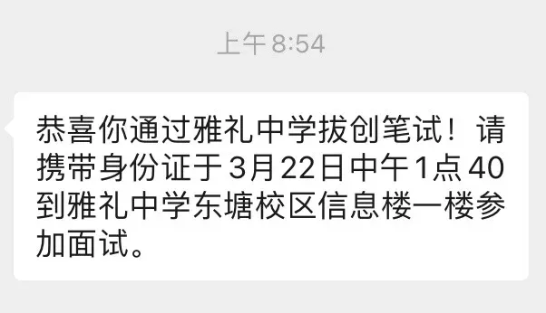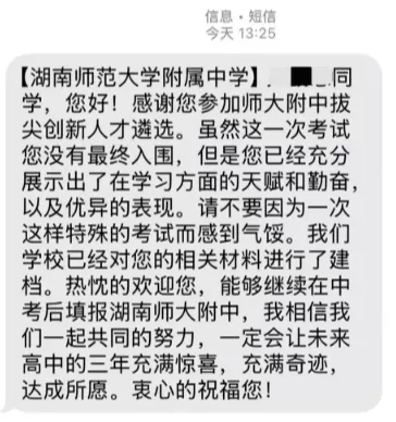 对于没有入围的学生,部分学校也有通知到位,如附中的短信: