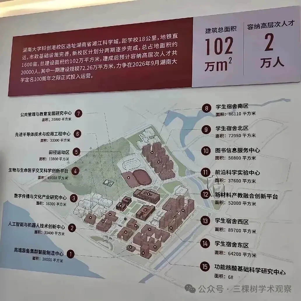 在高等教育层面,湖南大学新校区建设进展迅速,预计今年9月建成。