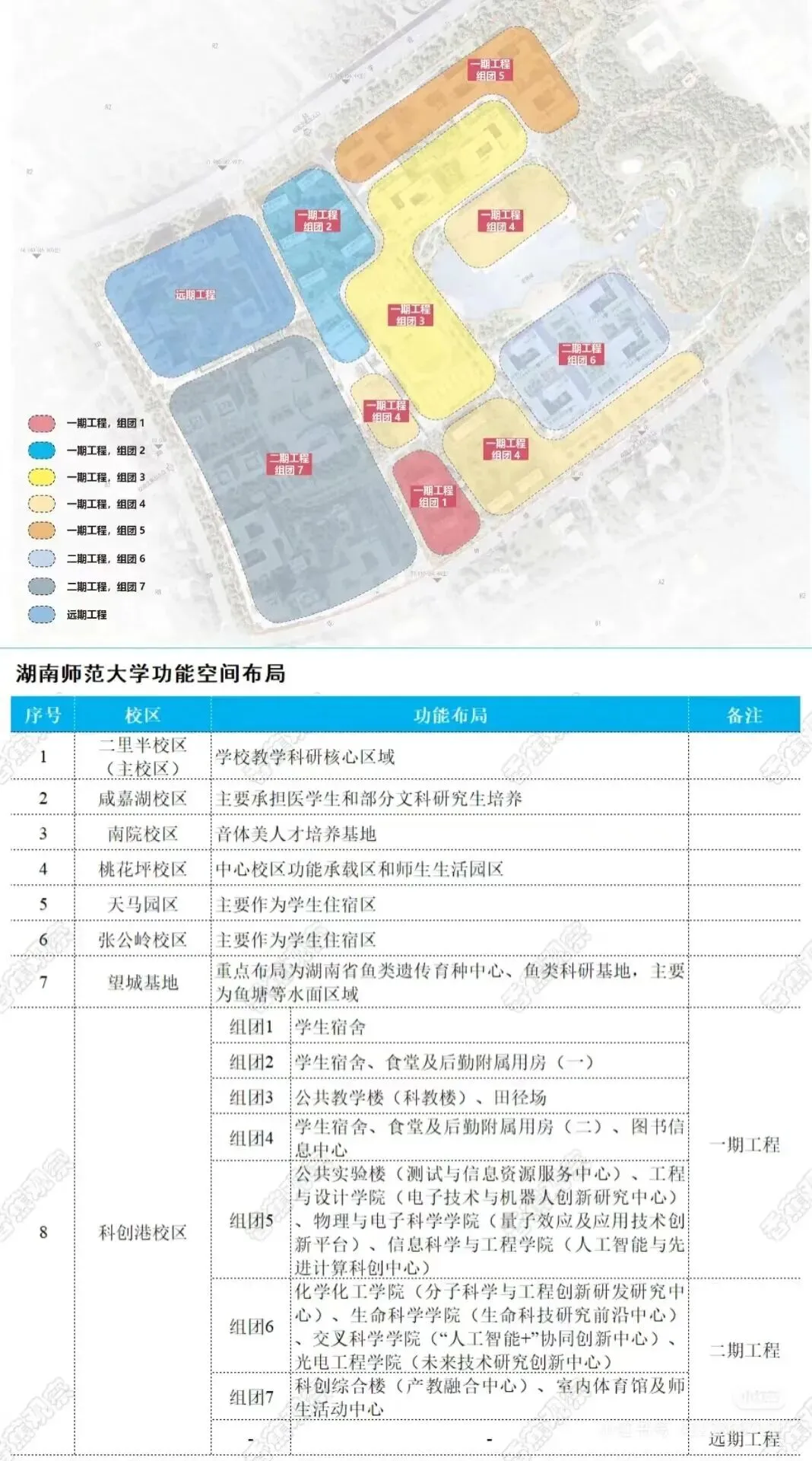 湖南师范大学新校区同样加速推进,项目第一、二、三组团规划正式公示。