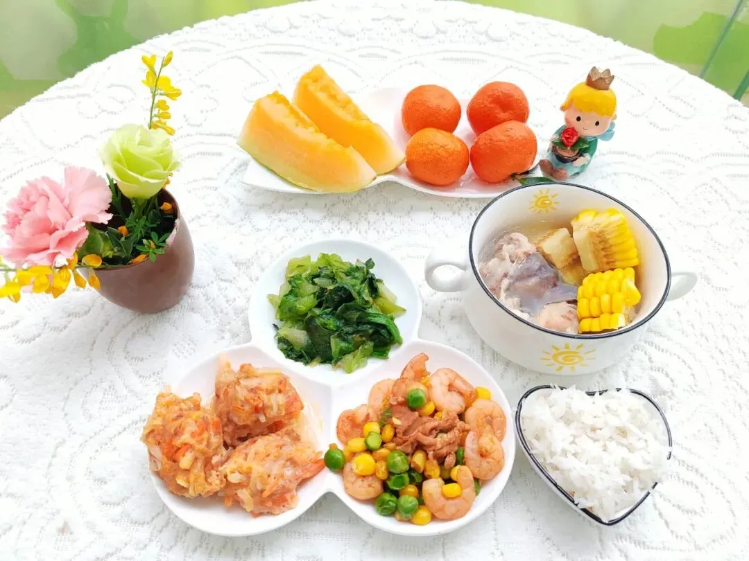 香米饭 蒜蓉生菜 棒骨玉米汤