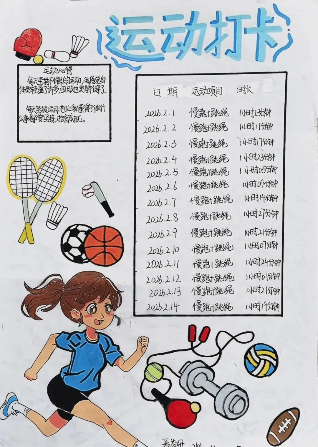 “少年强则国强,体魄健则志更坚”。队员们制定科学的假期锻炼计划,每日坚持运动不少于1小时,自主选择跳绳、羽毛球、慢跑等项目打卡,合理作息、保护视力,用汗水诠释骏马精神,将健康理念融入假期每一刻,锤炼强健体魄。