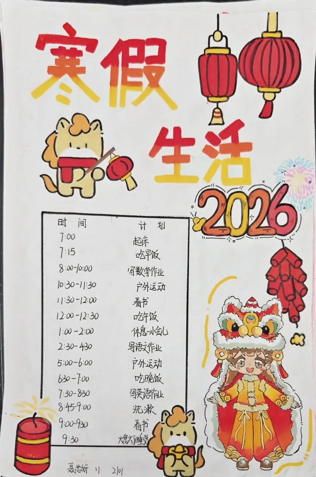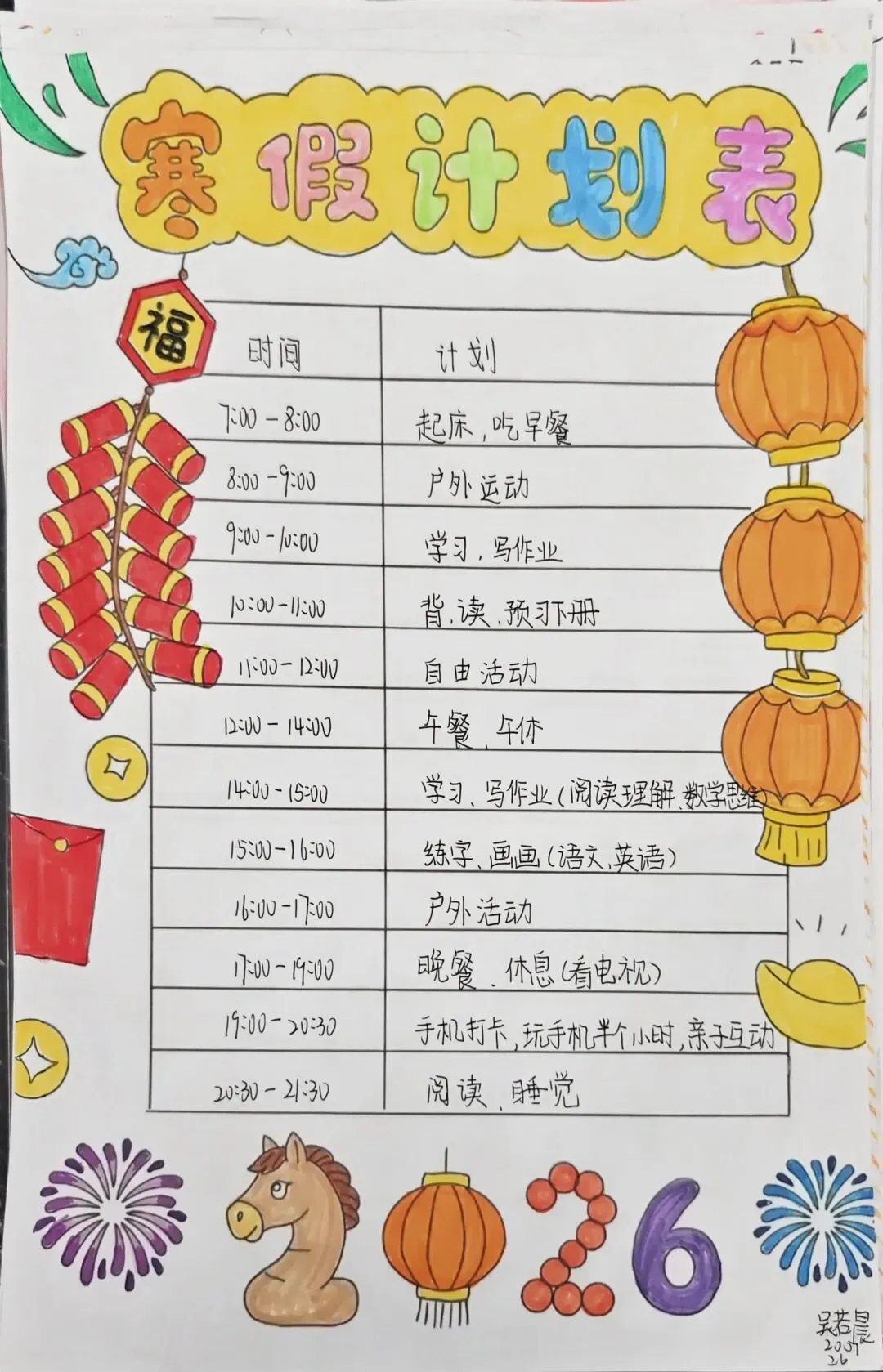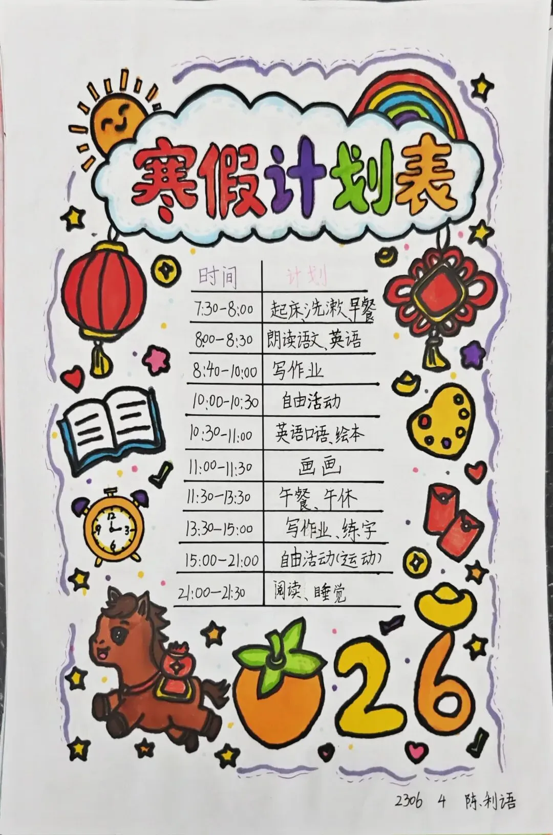 凡事预则立,不预则废,规划藏着成长的力量。熙娃们积极参与寒假计划制定,充分发挥想象力和创造力,将马年元素融入计划表设计,有的绘制骏马图案,有的书写马年励志标语,既保证了计划的实用性,又体现了趣味性。明确作息、学习、运动等安排,严格执行计划,在规划中提升自我管理能力,争做自律小能手。