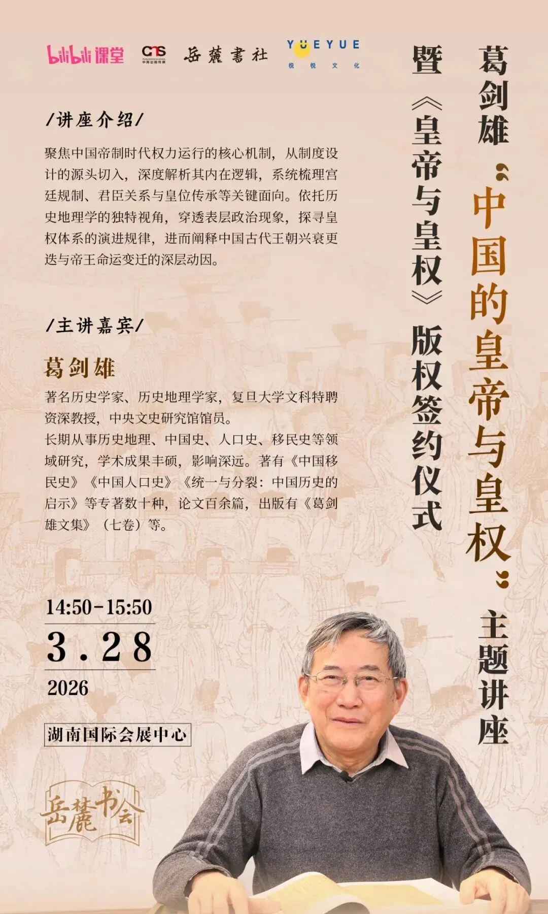 葛剑雄 携其课程《皇帝与皇权》从线上走到线下,与你面对面,展开一场关于历史、权力与人性的深度对话。