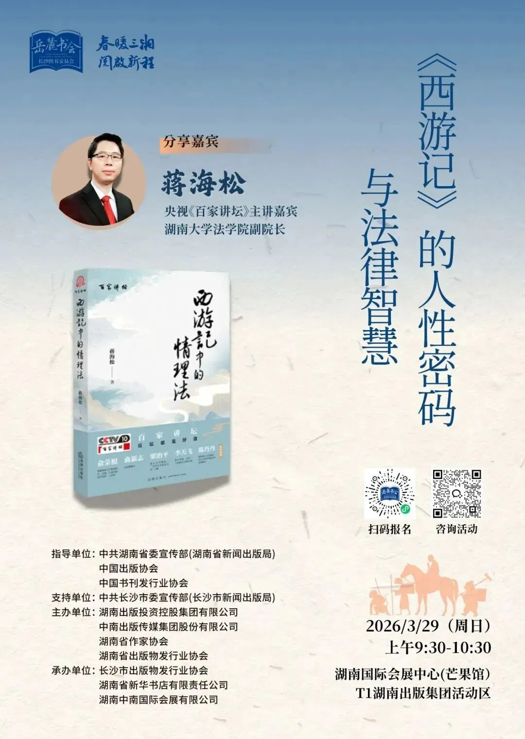 湖南大学法学院副院长蒋海松 教授将携新书《西游记中的情理法》做客2026岳麓书会,让我们换个角度读西游。