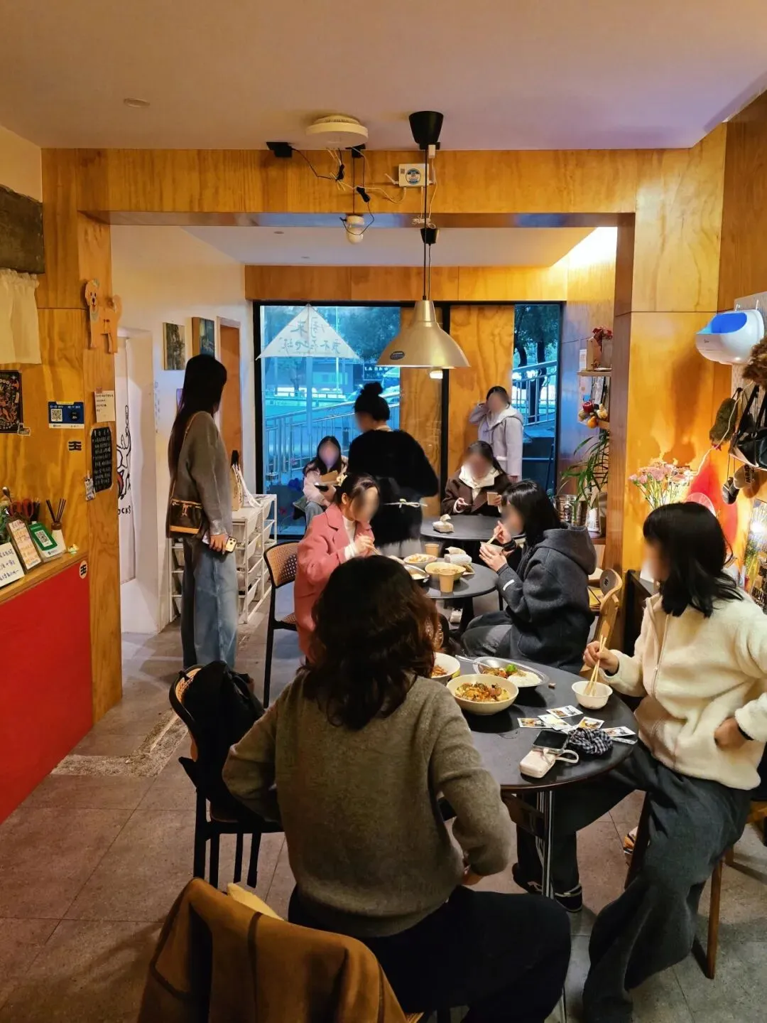位置在文艺新村,靠解放中路那边的临街,门头不是很显眼。店内只有3张小圆桌(如下图),还有我没拍到的2个窗边位。