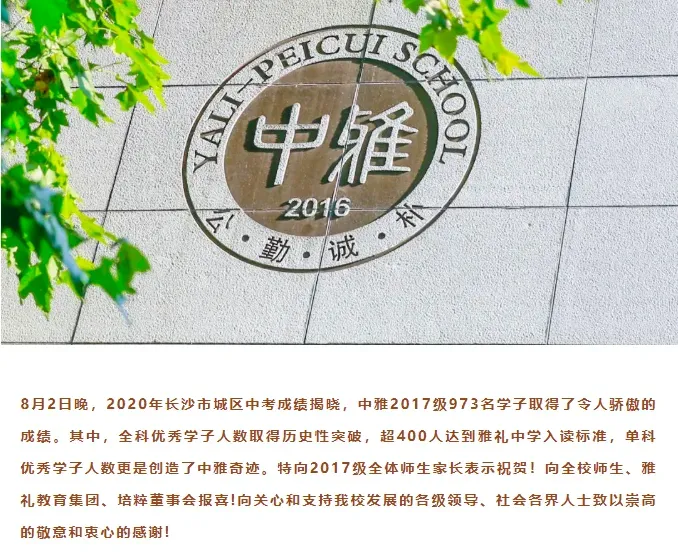 反正在原长郡中学初中本部师资+一类名小生源+加分大法的加持下,长郡双语的成绩,目前基本代表着长沙不择优+全平行分班初中的上限了。