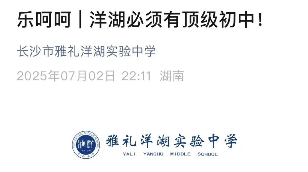 洋湖板块的初中,今年终于打了一个翻身仗,雅礼洋湖的官方公众号,也乐呵呵的表示:洋湖必须有顶级初中!自豪之情溢于言表。