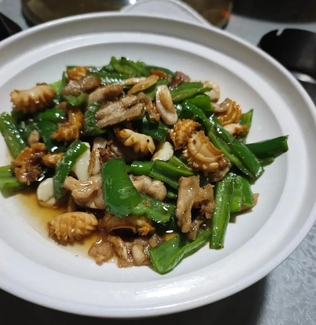 我坐下后,一位朋友把青椒炒鲍鱼转过来让我尝尝。