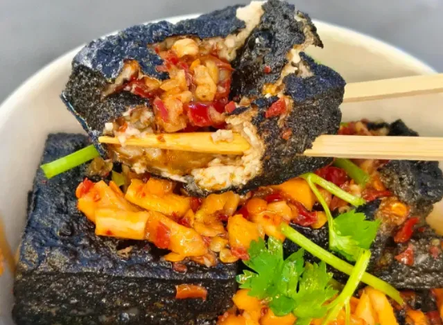 长沙臭豆腐堪称小吃界的传奇,外焦里嫩是它的招牌。黑色的豆腐块在油锅里翻滚后,变得金黄酥脆,咬上一口,“咔嚓” 作响,浓郁的卤水香气瞬间在口中散开。再配上特制的酱料,咸香微辣,让人欲罢不能,是街头巷尾最受欢迎的美味。