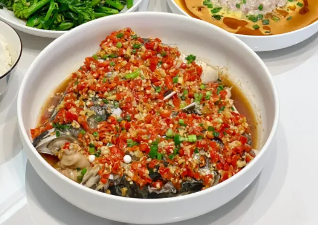剁椒鱼头以鲜辣闻名。硕大的鱼头,覆盖着一层厚厚的剁椒,鱼头的鲜嫩与剁椒的鲜辣完美融合。鱼肉吸收了剁椒的精华,鲜辣入味,鱼肉细腻滑嫩,一口下去,满满的幸福感。吃的时候再用汤汁拌上米饭,香辣过瘾,让人回味无穷。