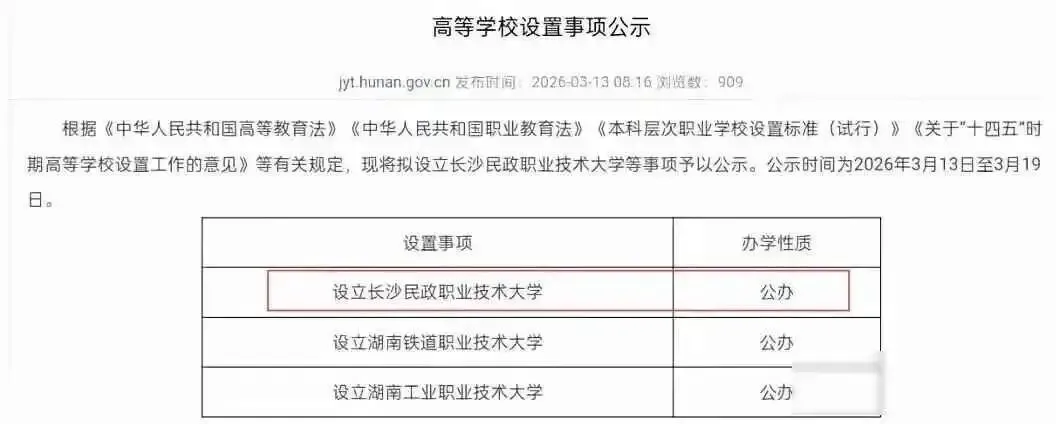 3月13号,湖南省教育厅发布公示,长沙民政职业技术学院准备改名为长沙民政职业技术大学,这不是简单换一个招牌,而是真正把职业教育提升到本科层次,重点是“职业”这两个字没有去掉,反而更加突出。