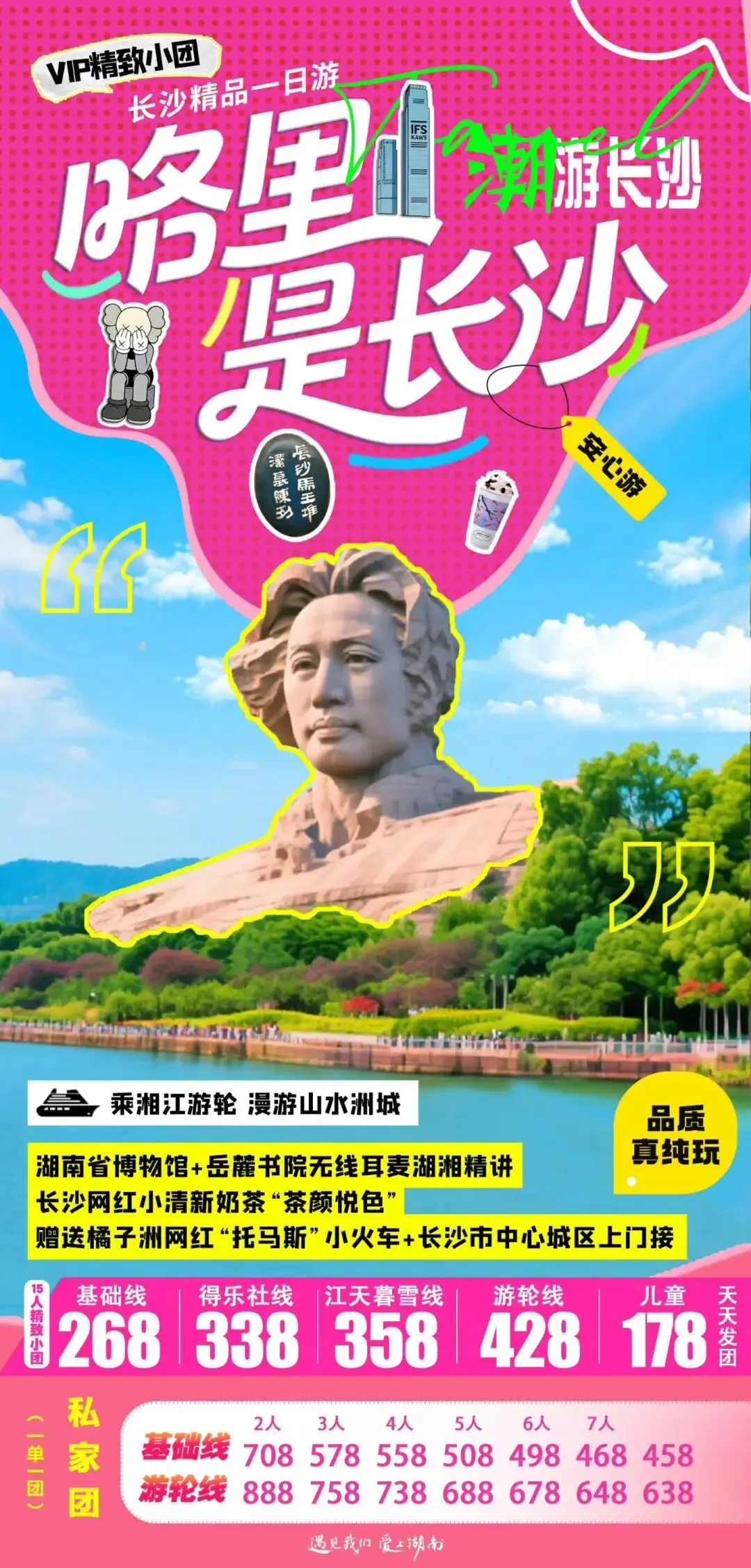 🍁费用包含:1天旅游车费+湖南博物馆、岳麓山、橘子洲门票预约+岳麓书院门票+得乐社门票+导游服务+保险+赠送橘子洲往返小火车+赠送网红奶茶“茶颜悦色”+赠送省博和岳麓书院无线耳麦
