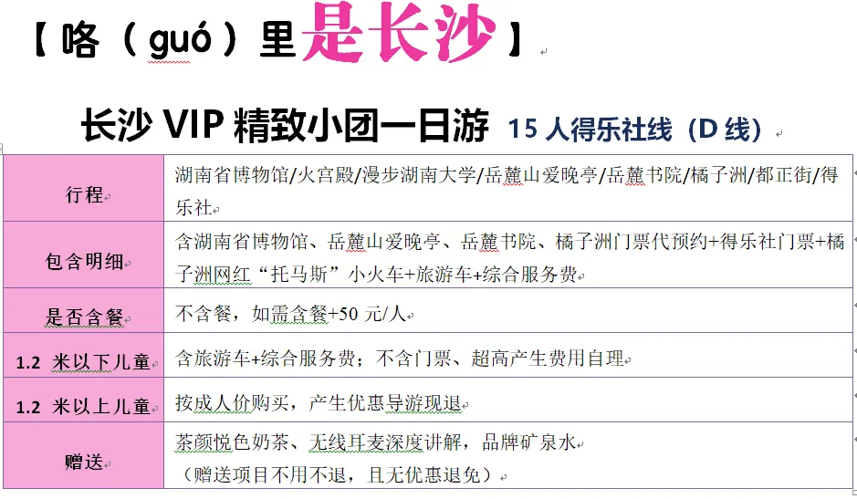 🍁集合地点:长沙主城区火车站商圈/万家丽商圈/五一广场商圈可上门接送,其他区域需要您赶到约定集合点。