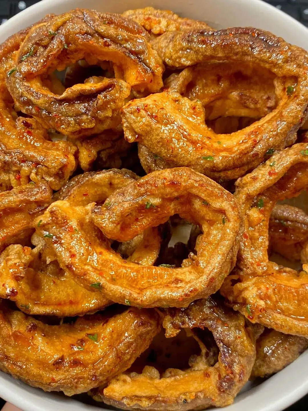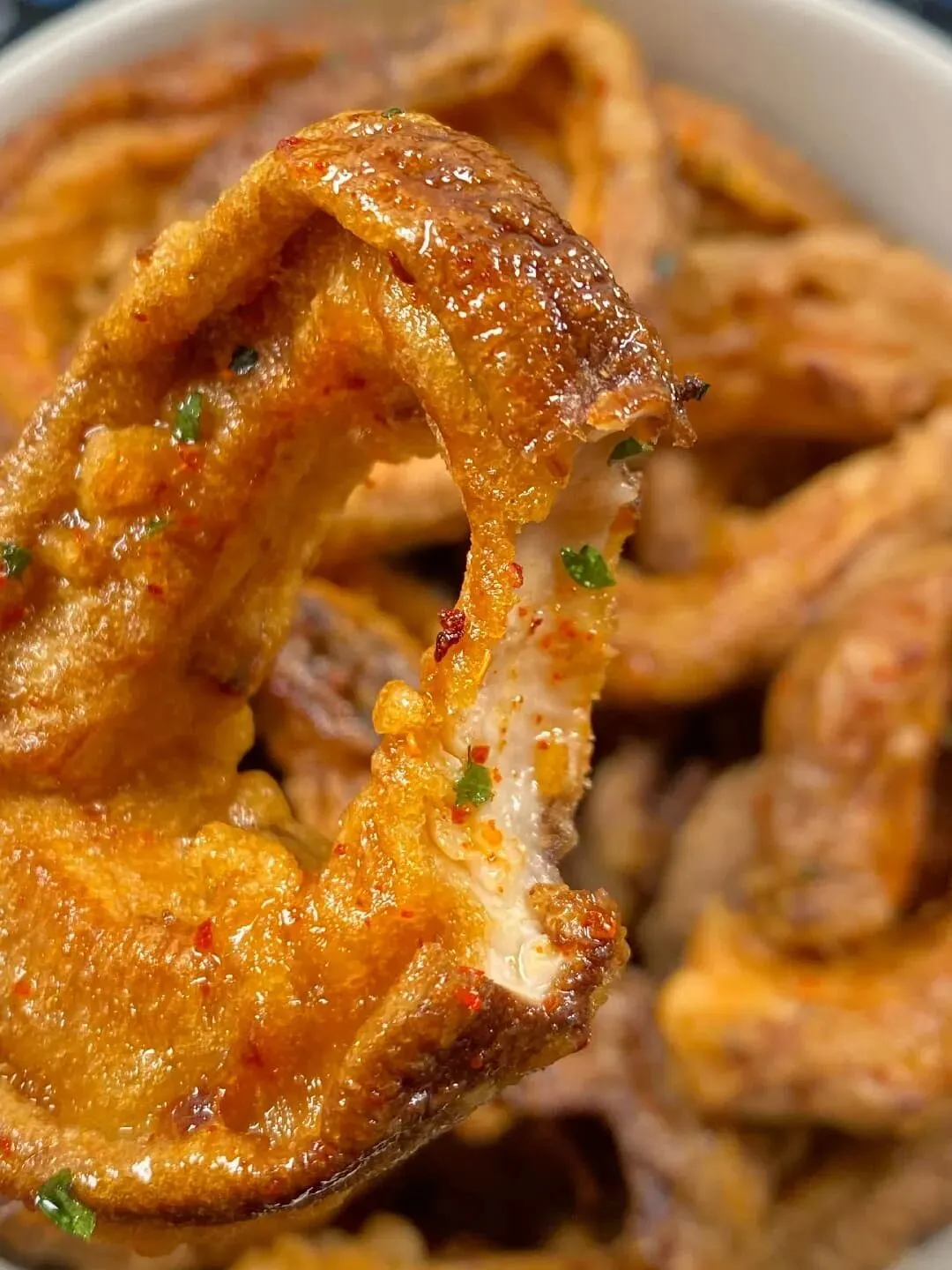 我知道好多姐妹平时不爱吃香菇,信我做这个你绝对会爱上,裹糊的时候要是太干可以加一点点清水,不要太稀哦不然挂不住糊,虽然我是广东人但我超级爱吃辣,辣椒粉辣椒粉多撒点才够味,喜欢吃酸甜口的还可以挤点柠檬汁,解腻又提香! 吃不完可以放密封罐里存3天. 不会软
