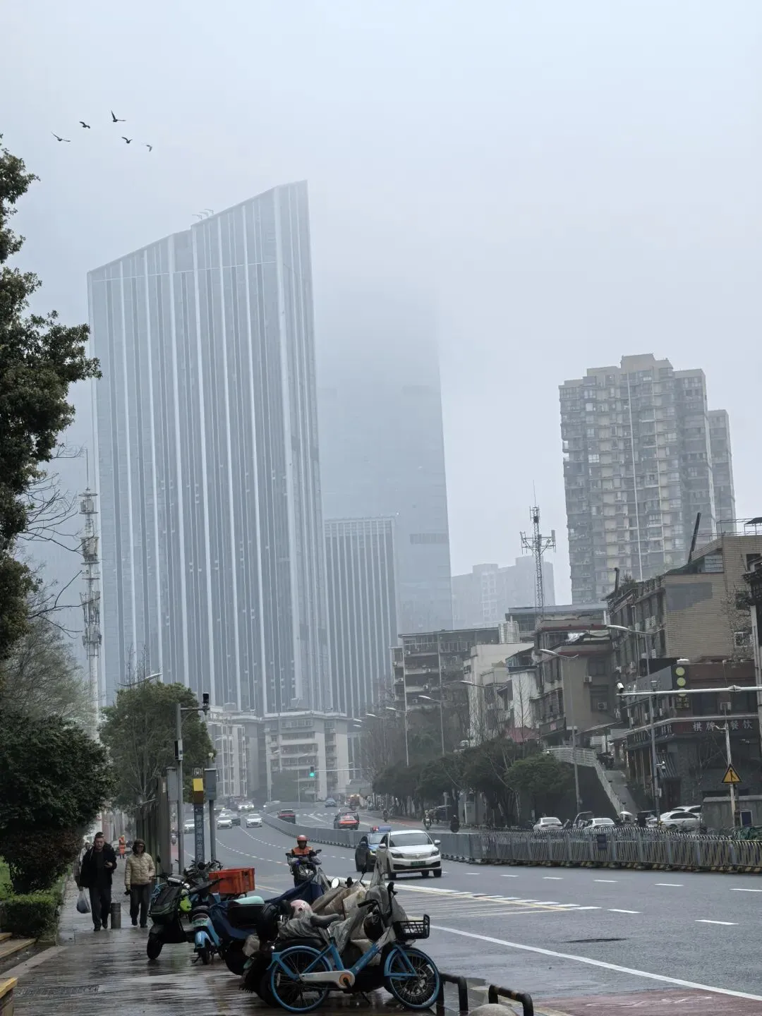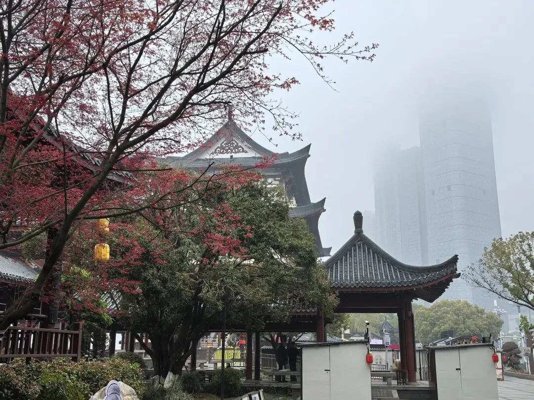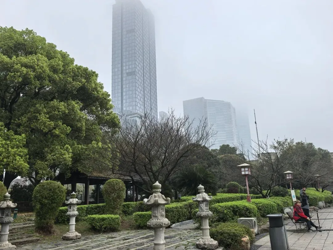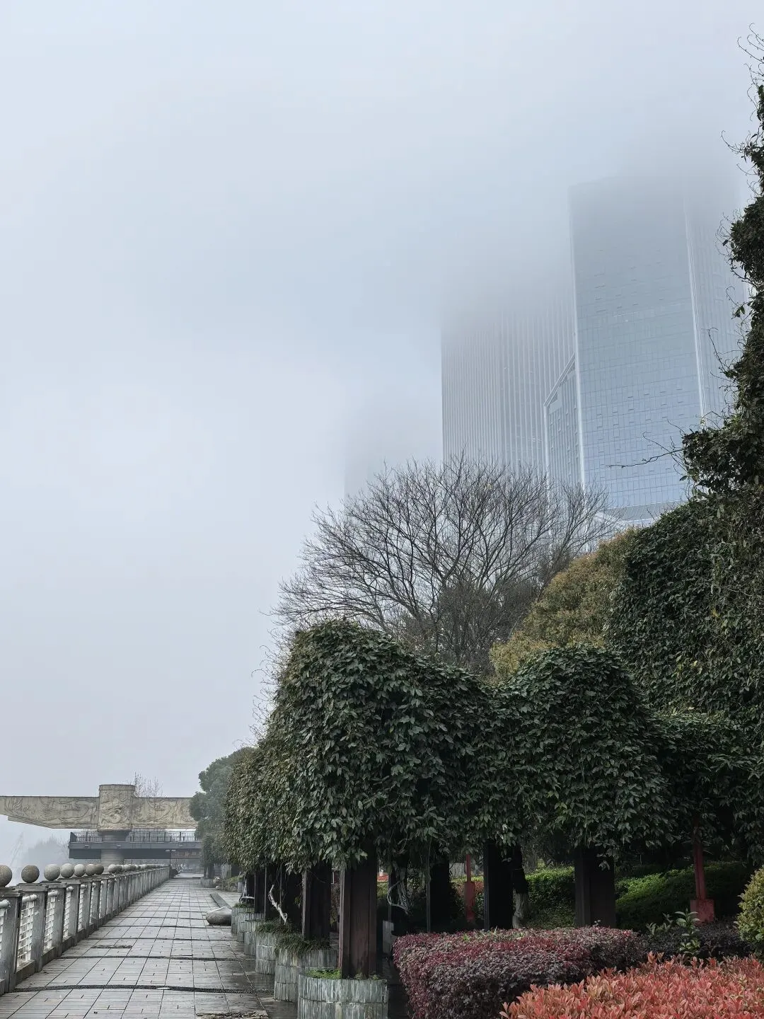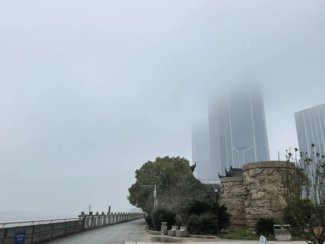 江边的高楼隐在云雾中,那些在写字楼中上班的人们,窗外大概是白茫茫一片吧?