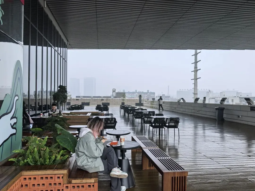 广场旁的咖啡馆和看今朝旅拍,有极好的位置,要消费才能拍照。