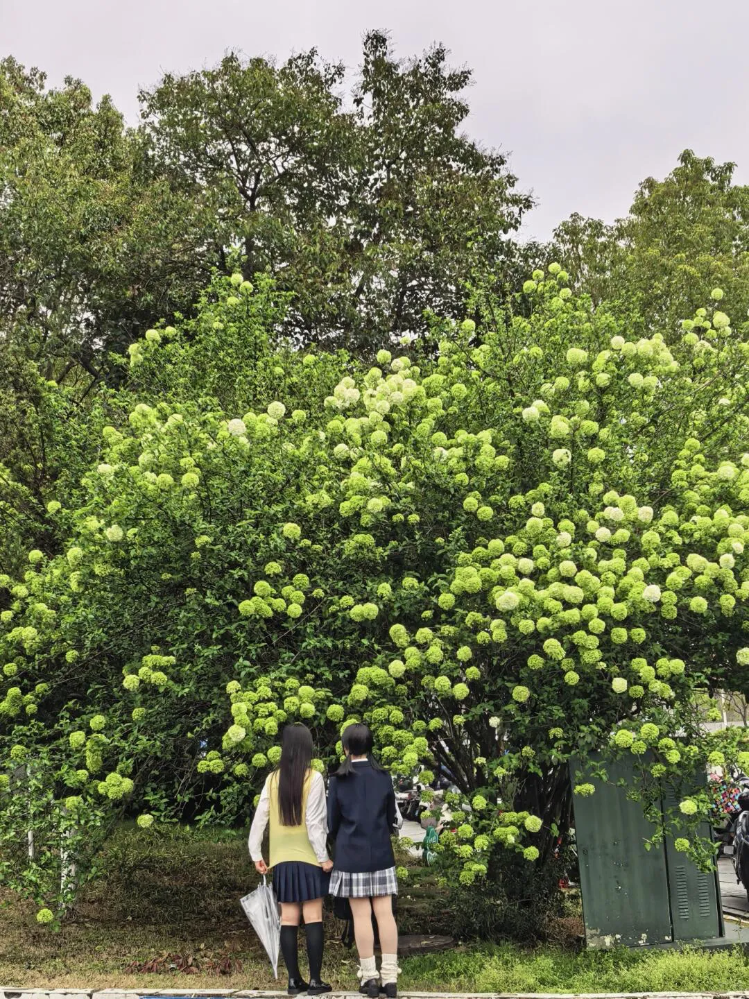 这里的木绣球因为之前冻雪影响,花枝微微垂到地面,反而形成了超特别的拍摄角度,不用踮脚、不用仰拍,近距离就能和花球贴贴,氛围感超独特,校内师生和附近宝子冲就对了。