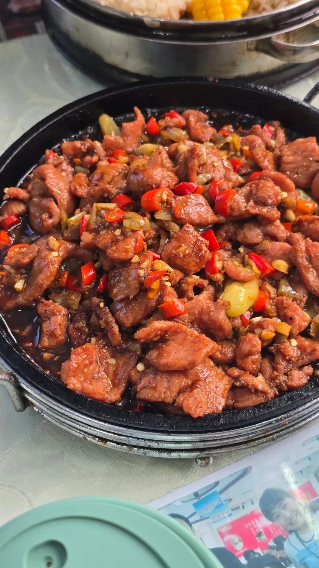 选用新鲜土鸭,切成小块腌制入味,搭配洋葱、辣椒在铁板上爆炒,端上桌时还滋滋作响,香气直接扑鼻而来。鸭肉紧实不柴,入味十足,带着铁板的焦香,香辣够味、越嚼越香、回味悠长。