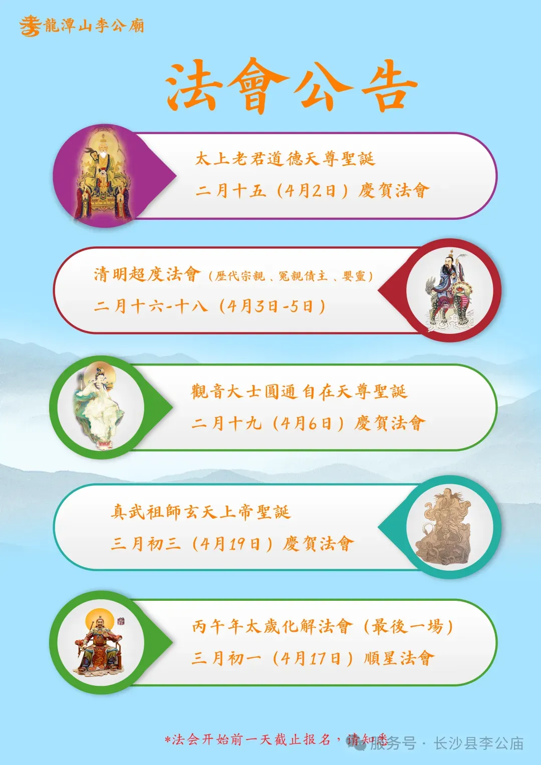 长沙李公庙活动 | 近期法会安排