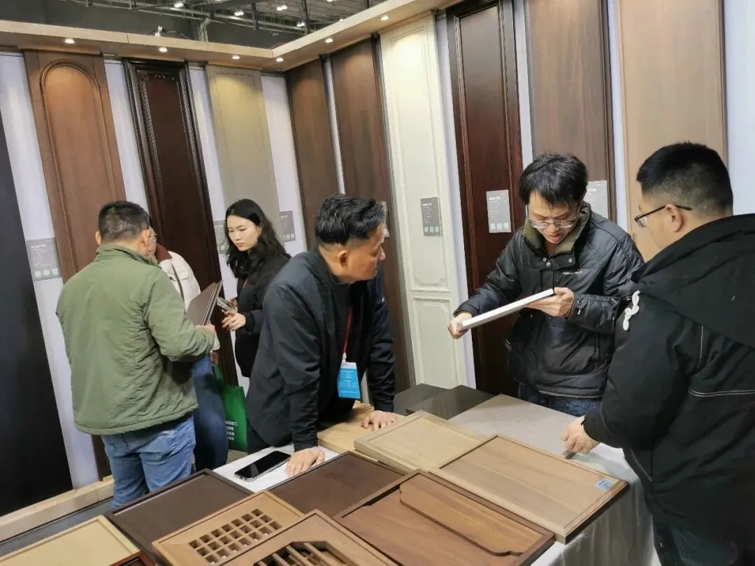 展会期间,华桢木作展台人气爆棚,前来咨询、体验的专业观众与装修业主络绎不绝。我们带来了实木、原木两大系列核心门型产品,从日常刚需的衣柜、橱柜,到提升家居质感的护墙板、木门,全品类覆盖,一站式满足家庭全屋定制需求,每一件产品都承载着华桢对品质的极致追求。
