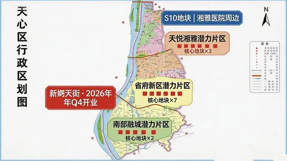 S10地块(湘雅路以南、湘江大道以东)2026年3月由金茂摘得,成交楼面价11010元/㎡,周边配套包括湘雅医院、省妇幼保健院。