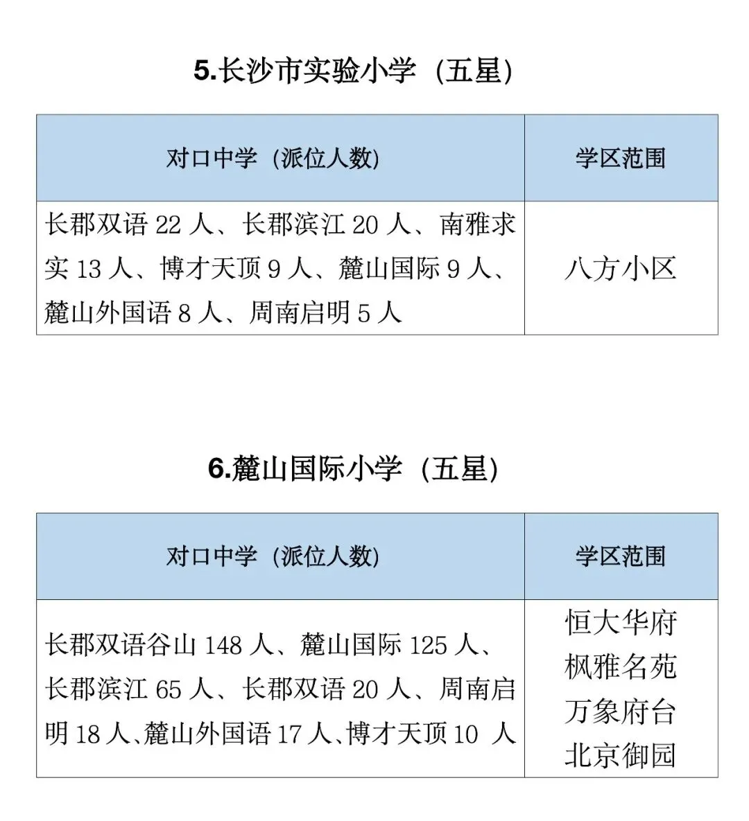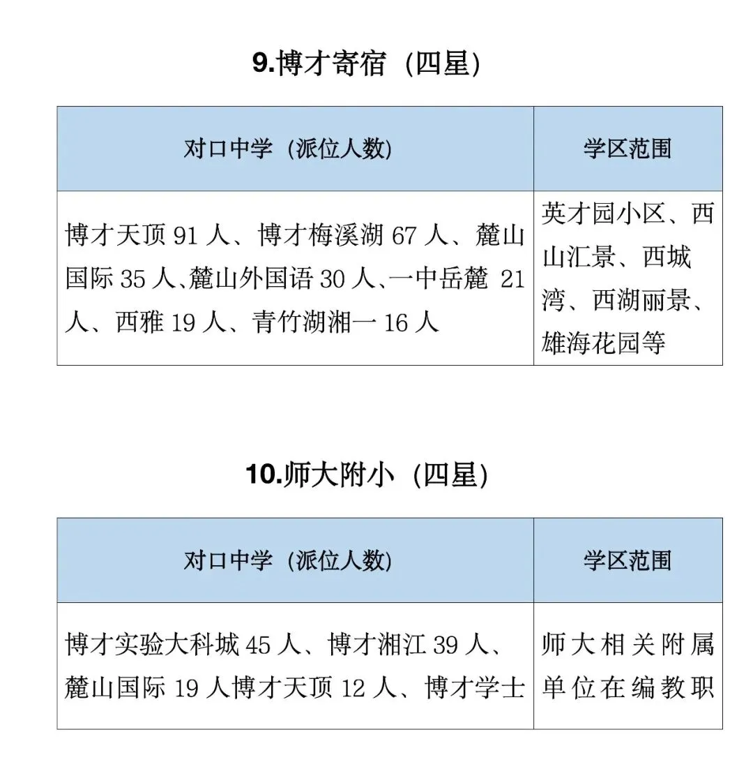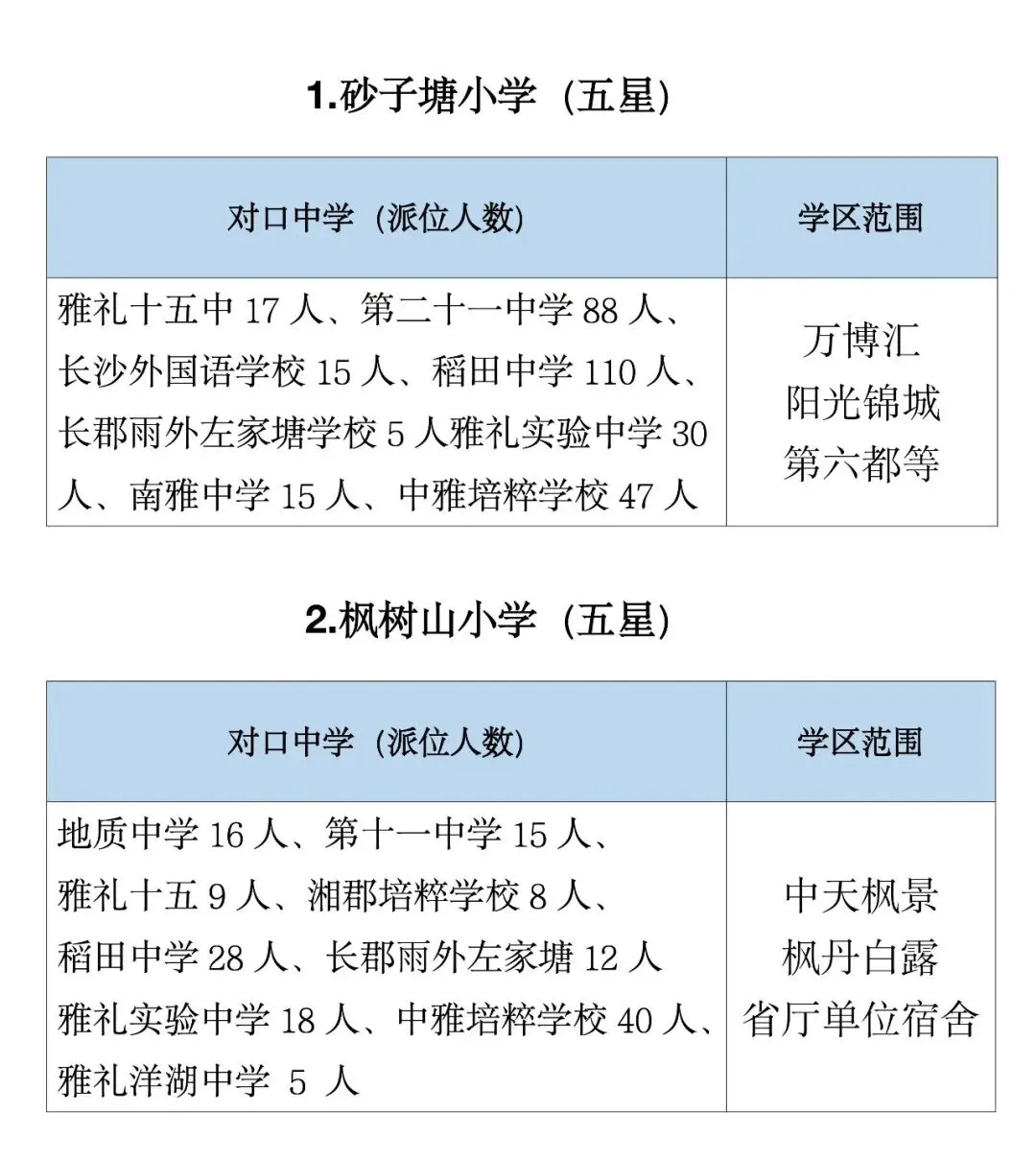 麓山国际实验小学:市直属热门强校,硬件师资一流,学位紧张,优先录取1–3类生源,派位名校占比高。