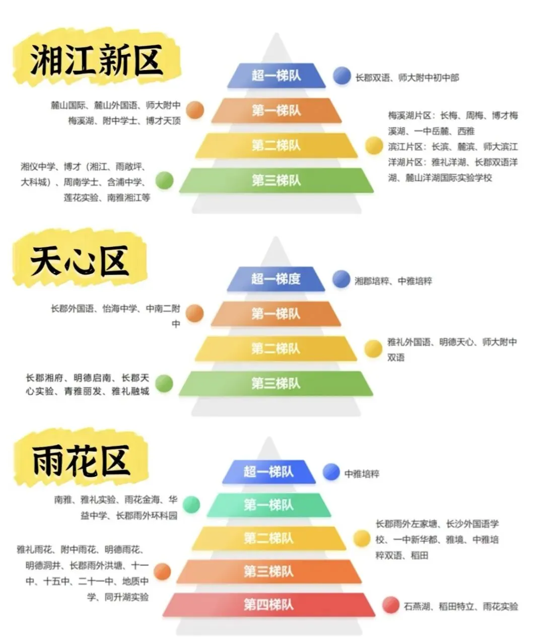 3. 湘郡培粹:长郡系核心校,民转公后全派位生源仍保持19%四大率、95%普高率;本部无学位房,新校区与本部“五统一”。