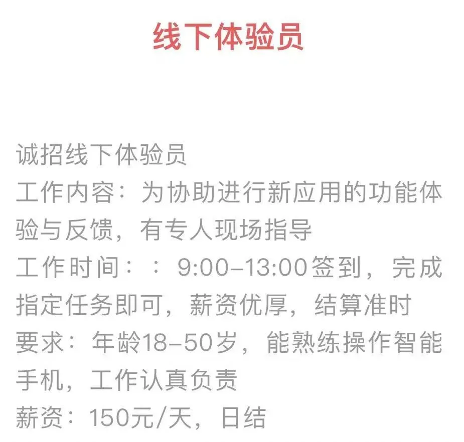 要求18-35岁,男女不限,每天要10个人,工作时间三个小时左右,工资100,现结