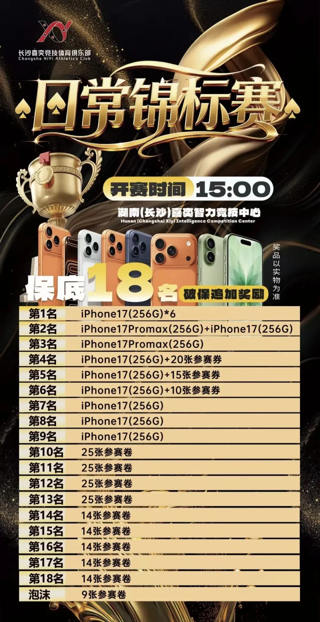 *下列赛事仅供参考,请选手参加比赛前电话咨询或与店内客服确认,以店内实际情况为准。
