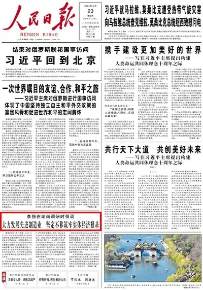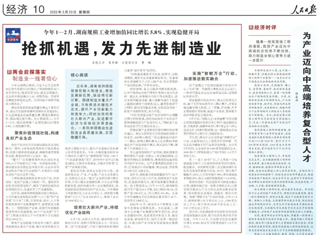 近日,《人民日报》在头版和经济版连续发文——《李强在湖南调研时强调:大力发展先进制造业 坚定不移筑牢实体经济根基》《抢抓机遇,发力先进制造业》,聚焦湖南、关注长沙先进制造业,小布分享相关内容如下: