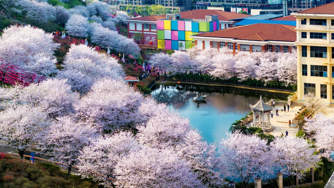 ❸游园体验更丰富:天鹅湖、揽月亭新增艺术装置,汉服爱好者可自带道具,在樱花大道定格人生照片。