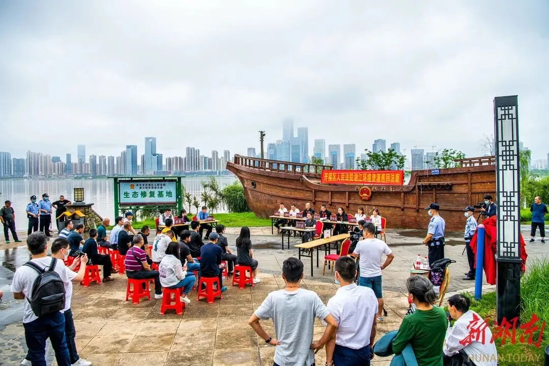 在湘江边巡回审理一起环境资源案件,通过群众身边“小案件”折射湘江保护“大道理”。