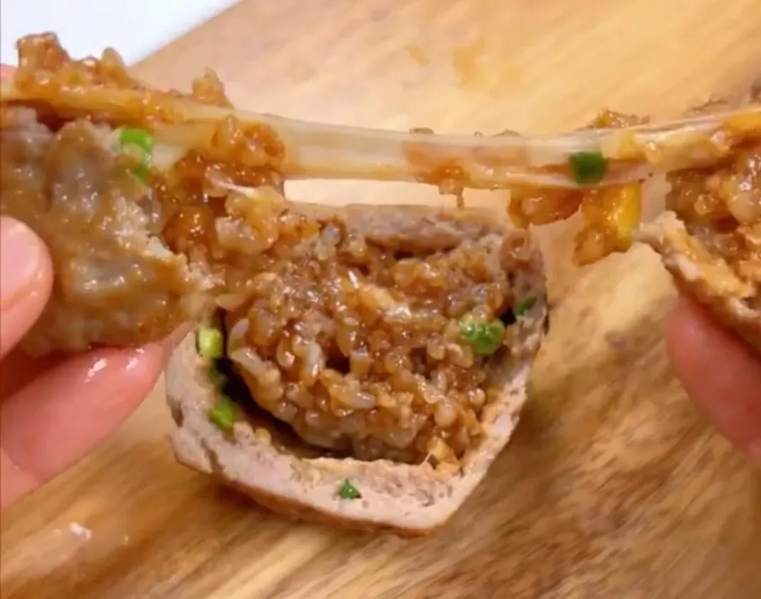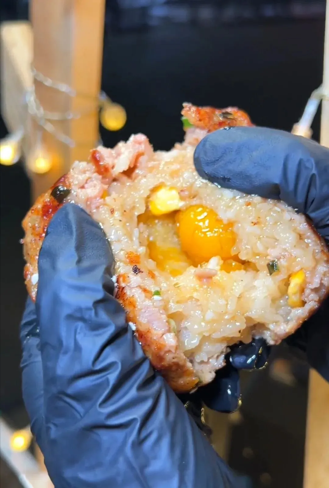 后腿肉绞碎,配上秘制调料和鸡蛋一顿搅和,肉馅香到能直接封神。糯米饭加猪油调味,和咸蛋黄锁死CP,外层再裹上多肉的肉馅。