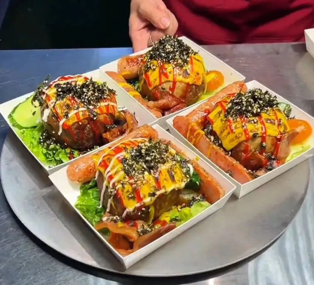 长沙夜市的肉包饭,火到没边!好吃到排长队?这颗像巨型狮子头的小吃,三层暴击的美味谁顶得住!