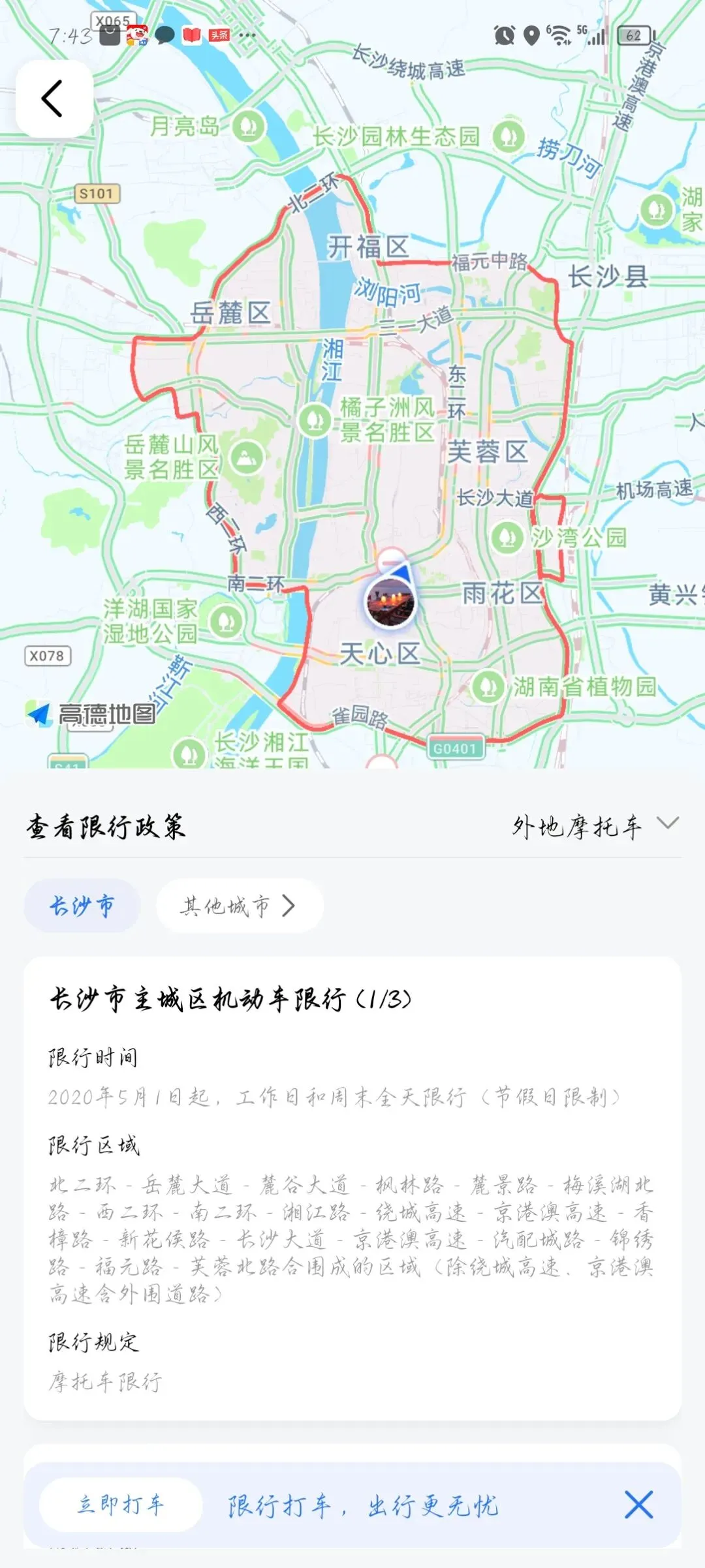 结合上述,目前长沙市暂时不会解除对摩托车的禁行。