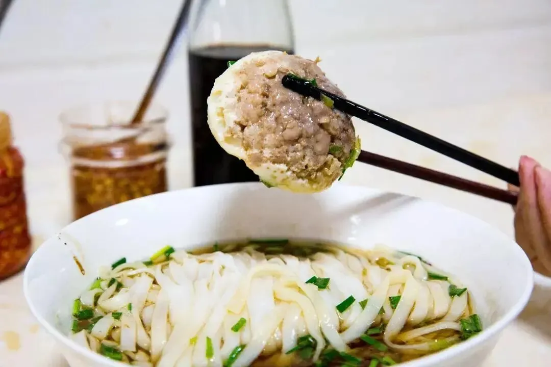去他家一定要点那个肉饼蒸蛋,据说连汪涵都特别喜欢。一整颗蛋包在肉饼里,还有一点点胡椒的香味,肉饼吸满了汤汁,再配上一口粉,简直绝了。