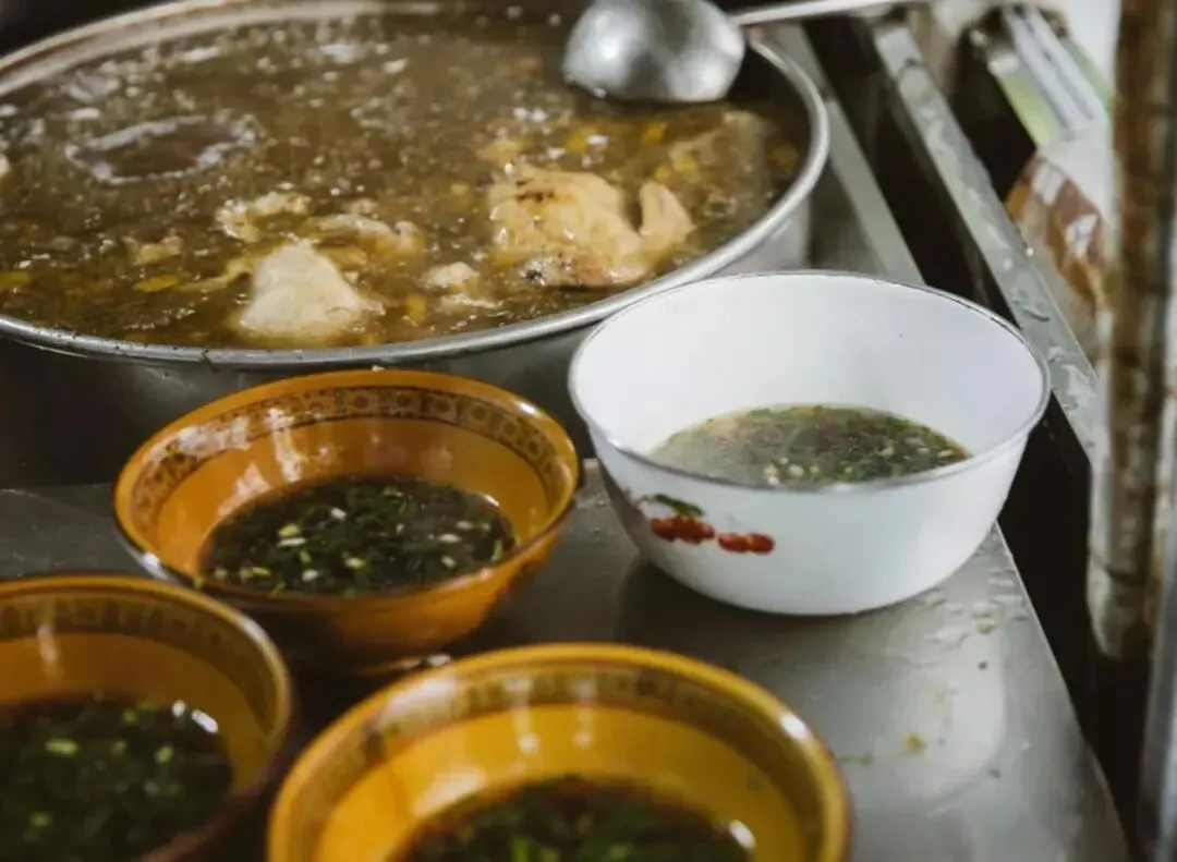 门口摆着两个大锅,一个用来煮粉,另一个锅里全是骨头汤,听老板说从凌晨四点就开始熬了,那个汤底全是纯骨头出来的香味。