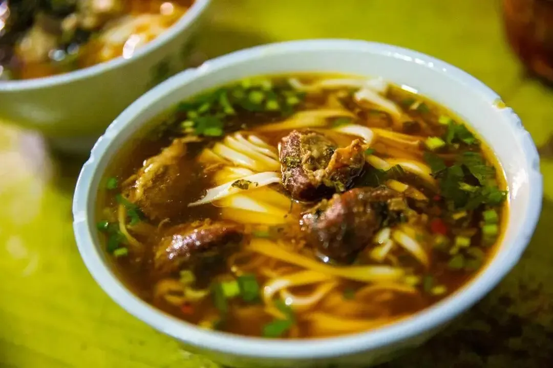 店里没菜单,只有扁粉和圆粉。你想吃肉丝还是牛肉,直接跟老板说就行。粉吃起来很顺滑,最绝的还是那口汤,一定要喝光,真的太鲜了。