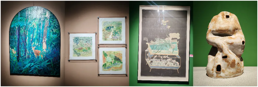 展览特邀旅居海外三十余年的艺术家王晓鸣,其作品宛如深植异质文化土壤的“时间胶囊”,是中西文化在个体生命中长期对话的结晶,超越简单文化身份认同,呈现数十年跨文化深度栖居实验,成为本次展览的亮点之作。特邀艺术家王清丽以当代语言重构经典意象,拓展视觉表达边界;丁虹、周巧云、石亦眉等本土中坚力量,以纸本、绢本、陶瓷、综合材料等丰富媒介,从私密情绪到社会空间,从自然境遇到精神原乡,构建层次丰富的女性空间叙事。