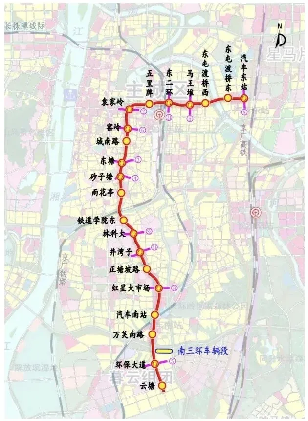 覆盖区域:全长约22.3公里,设21座车站。它纵贯长沙主城区,覆盖了暮云组团、红星商圈、东塘商圈、袁家岭等多个核心区域,并串联起长沙理工大学、中南大学铁道学院等多所高校以及汽车南站、汽车东站等交通枢纽。
