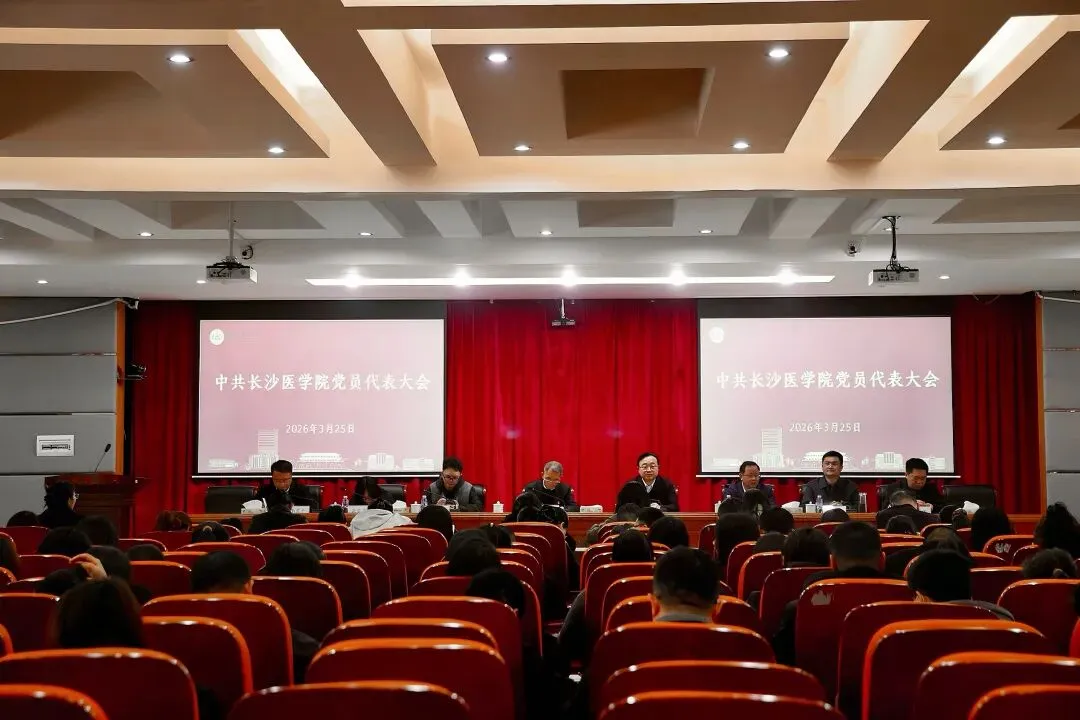 2026年3月25日上午,我校于办公楼六楼报告厅召开中共长沙医学院党员代表大会。大会严格按照程序完成党委委员、纪委委员补选工作,学校全体正式代表、列席代表参会。会议由党委委员、副校长杨赟主持。