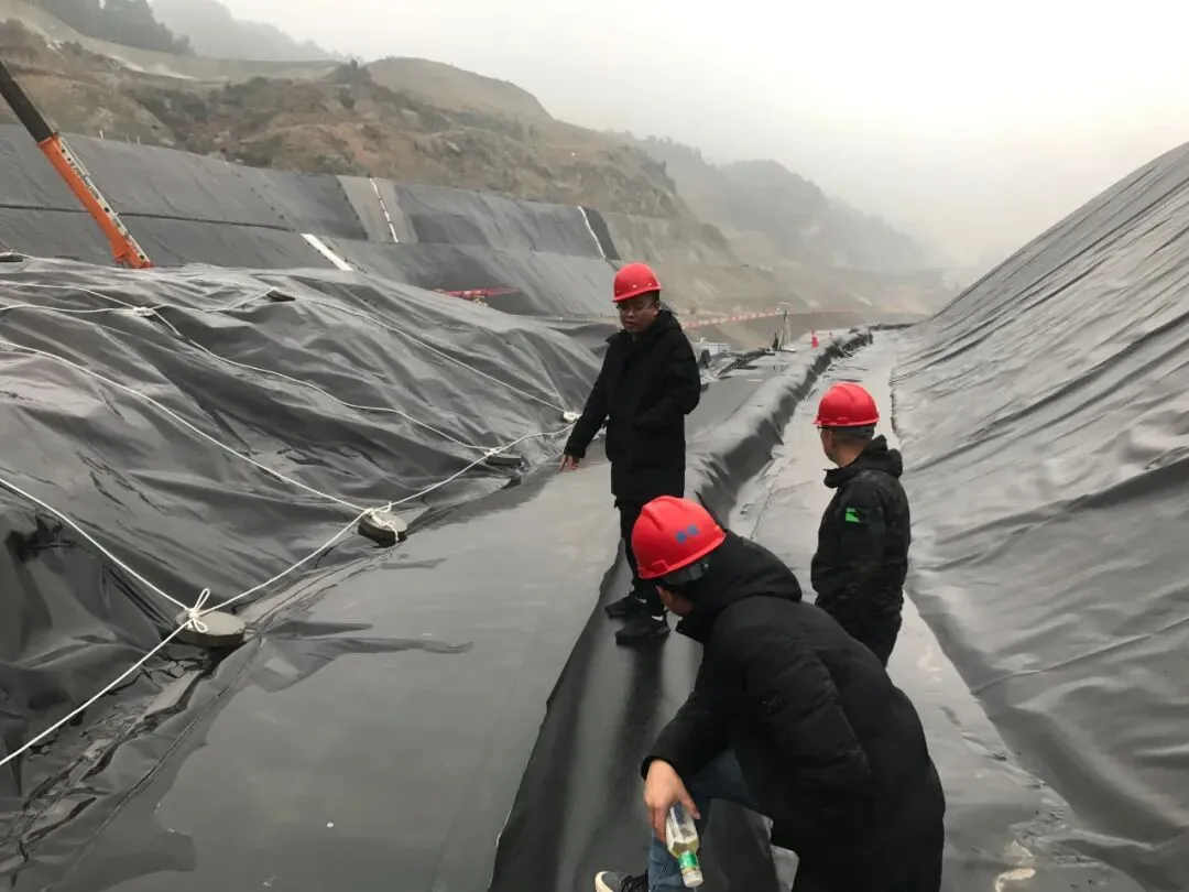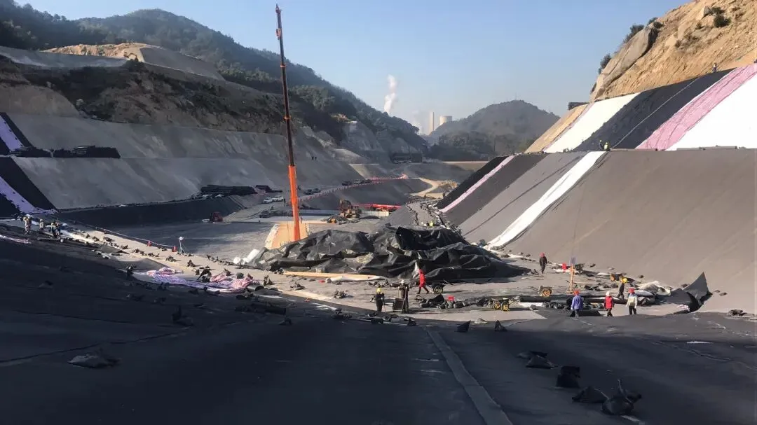 为了解决飞灰填埋场最大的环保风险——库区渗漏和渗沥液产量多,团队充分考虑了柔性结构易渗漏特点,采用复合衬里「三层膜」结构形式,设计有主防渗层(2.0mmHDPE膜)、次防渗层(1.5mmHDPE膜),两层中间还增设检漏层以便于随时观察库区渗漏情况。