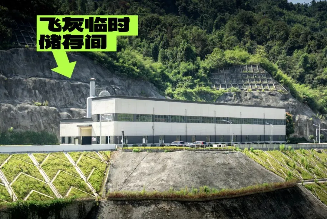 为尽可能避免雨水进入飞灰堆体,增大下雨时应急抗风险能力,设计团队在厂区增设了一座飞灰临时储存间,用于下雨时临时贮存飞灰,储存间占地1728平方米,可临时堆存4天以上的飞灰,大大减少了雨天不便作业时的「后顾之忧」。