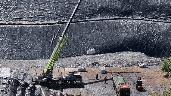 2019年年底,库区施工已到「铺膜阶段」,加之长沙市生活垃圾固体废弃处理场的飞灰螯合暂存间提前面临「爆仓」风险,急需现有项目「接棒」,来给长沙市的生活垃圾焚烧飞灰「兜底」。