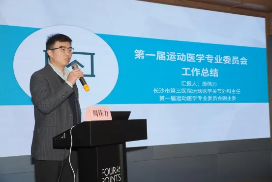 会上,长沙市中心医院党委书记邓平发表致辞,她对专委会过往工作予以肯定,同时对运动医学专业的发展前景寄予厚望,并表示作为主委单位,长沙市中心医院将全力支持委员会工作。当前,我院已挂牌成立长沙市体育医院,医院将以体育医院为载体,加强运动医学学科建设,为委员会工作提供有力的支撑。长沙市第三医院运动医学、关节外科主任,第一届专委会副主任委员周伟力代表第一届运动医学专业委员会作工作报告,全面回顾了往届专委会在学科建设、学术交流、人才培养临床实践等方面取得的丰硕成果,总结经验并为新一届工作提出宝贵建议。本次会议严格按照选举流程,以规范的投票方式选举产生第二届运动医学专业委员会委员、青年委员,以及主任委员、副主任委员。经选举,长沙市中心医院党委委员、运动医学科主任李良军当选为第二届专委会主任委员,长沙市第四医院刘洪主任、长沙市第三医院周伟力主任、长沙市第八医院胡伟国主任、浏阳市骨伤科医院黎意丰主任当选为副主任委员。同时,专委会还选举丑克、魏利成担任运动医学委员会顾问,朱卫担任秘书一职,为专委会日常工作的有序开展提供保障。我院在此次换届当选委员的有余敏、李金平。当选青年委员的有朱卫、熊杰鹏、谷云。选举结果公布后,新当选主任委员李良军作表态发言。他表示将肩负起主任委员的职责,团结带领第二届专委会全体委员,秉持学术立会、服务兴会的理念,加强学科交流与合作,推动运动医学的临床研究和技术推广,为全市人民的健康保驾护航,助力长沙市运动医学领域实现更高质量的发展。长沙市医学会会长欧志明对新一届专委会的成立表示祝贺,他强调,运动医学是医学领域的重要分支,与全民健身、体育事业发展紧密相关,希望新一届专委会充分发挥平台作用,凝聚行业智慧,加强人才培养,提升诊疗水平,为长沙市医疗卫生事业和体育事业的融合发展贡献专业力量。换届选举会议结束后,长沙市医学会第二届运动医学专业委员会召开第一次全体委员会,并组织开展座谈会,为专委会后续工作规划明确方向、凝聚共识。此次换届大会的圆满召开,标志着长沙市运动医学事业进入了一个新的发展阶段。新征程已启,重任千钧再出发。相信在全体委员的共同努力下,长沙市医学会运动医学专业委员会必将凝心聚力、开拓进取,为推动全市运动医学事业高质量发展、守护人民群众运动健康作出新的更大贡献!