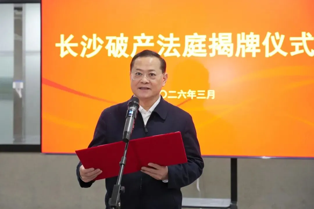 2026年3月23日,湖南省第一家破产法庭——长沙破产法庭揭牌仪式在长沙中院举行,这是法院进一步加强破产审判工作,充分发挥对企业积极拯救与及时出清职能,进一步优化法治化营商环境,服务经济社会高质量发展的一件大事。