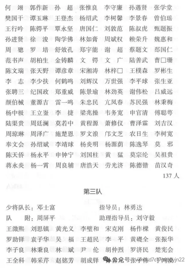 第三队学员128人。队长邓士富,系第25师副师长,队附周屏中为第193师562旅上校副旅长,政治指导员林勇达来自第193师政治部。下设3个区队,由第127师381旅副旅长王征熙、第59军补充旅2团上校团长刘思镇、福建省保安1旅上校副旅长黄光义分别任区队长。学员大都为各部队校级现役军官。
