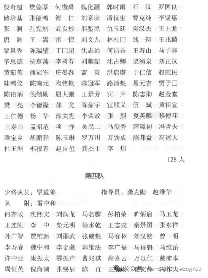 第四队学员143人。队长覃道善,系第18师副师长,队附雷中和为第14师中校参谋,指导员雷克勤来自军委会政治部战干1团政治部。下设3个区队,由第18师中校团附何齐政、第18师中校参谋沈熙文、第62师中校参谋刘润龙分别任区队长。学员大多为各部队连、排级干部,也有少数营级军官乃至上士班长。